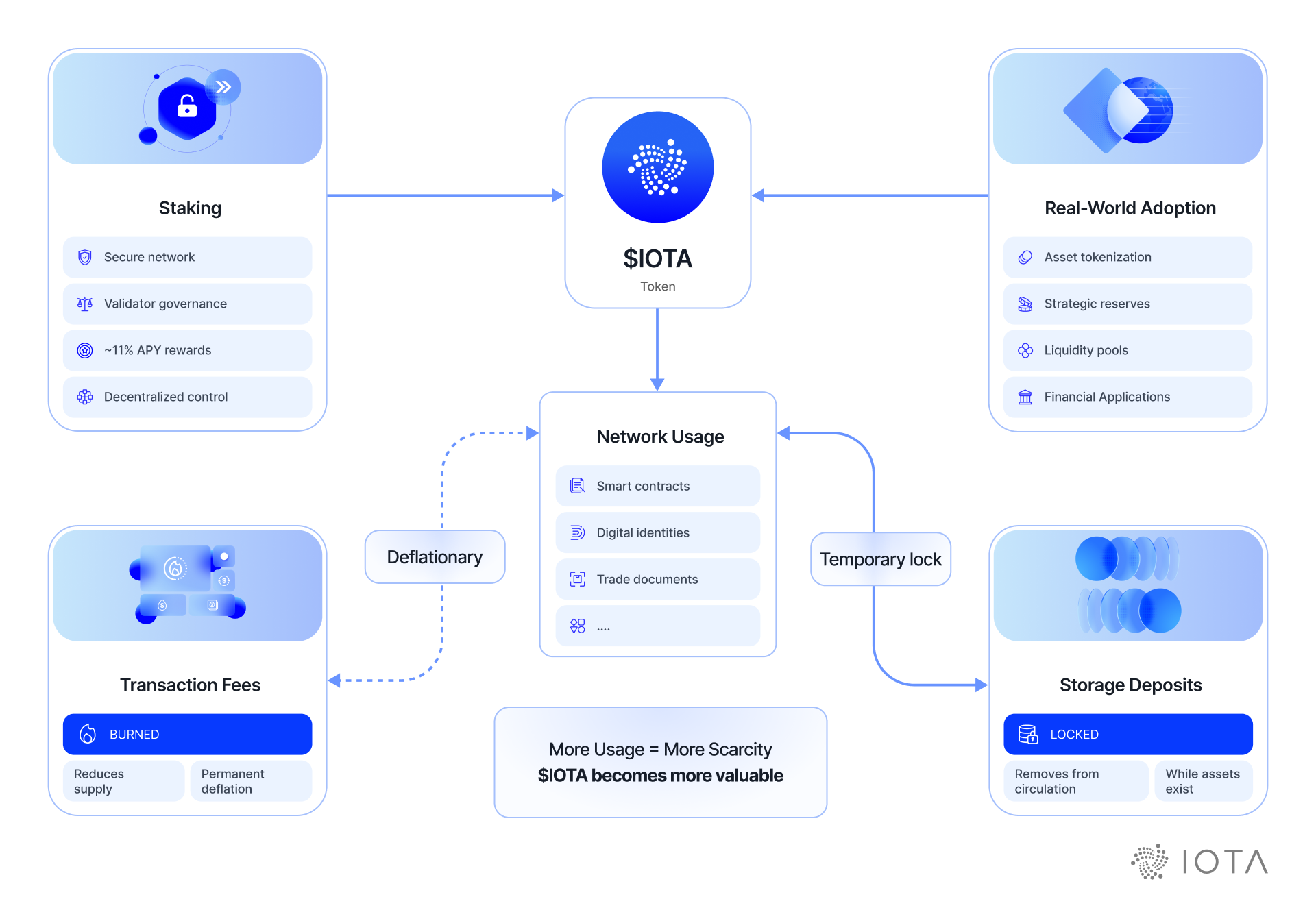 Combining all these factors – fee-burning usage, locked storage deposits, enterprise accumulation, and DeFi utility – it becomes clear that IOTA’s tokenomics model is engineered for deflationary pressure and value accrual as adoption grows. Every mechanism in the network’s economy either decreases the available supply or increases demand.